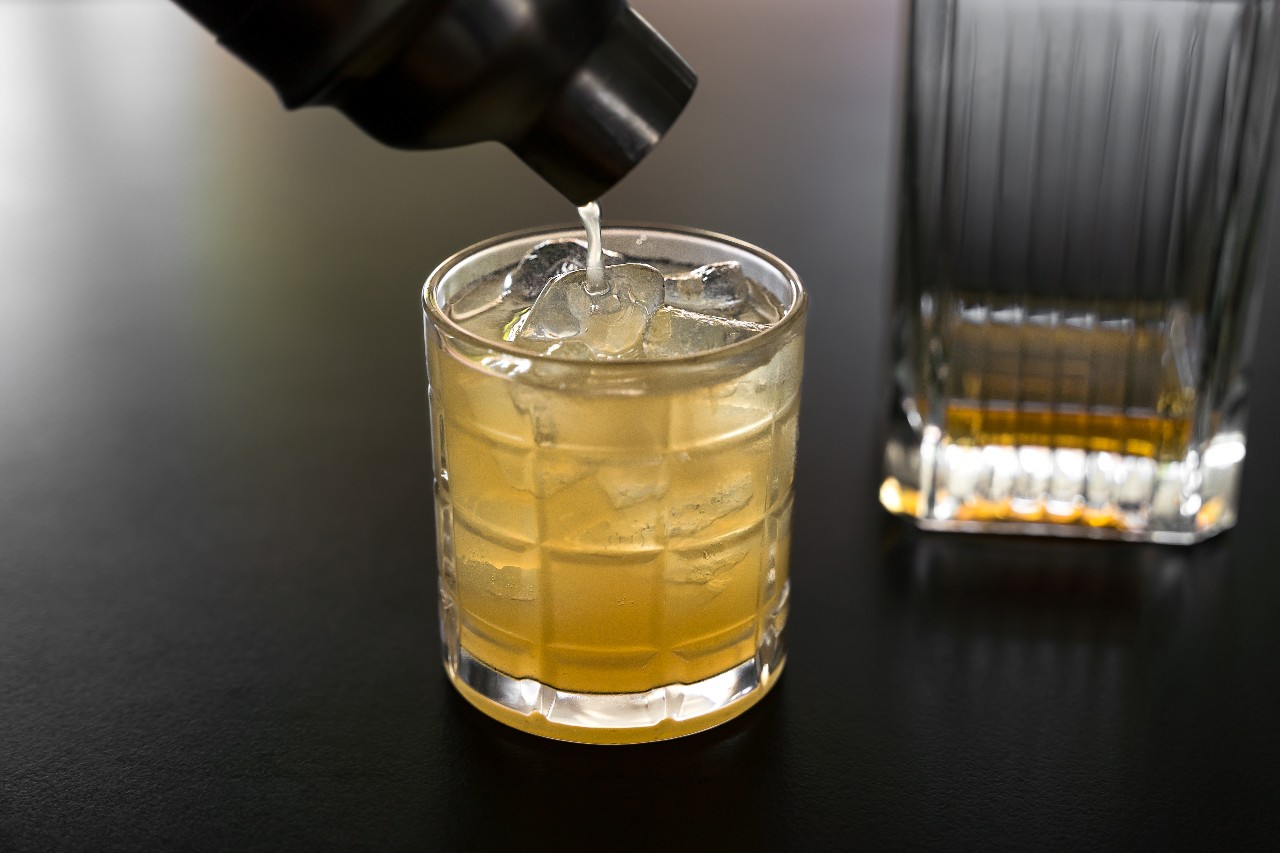 De smaak van deze Penicillin cocktail kun je vergelijken met een Whiskey sour met de bite van gember